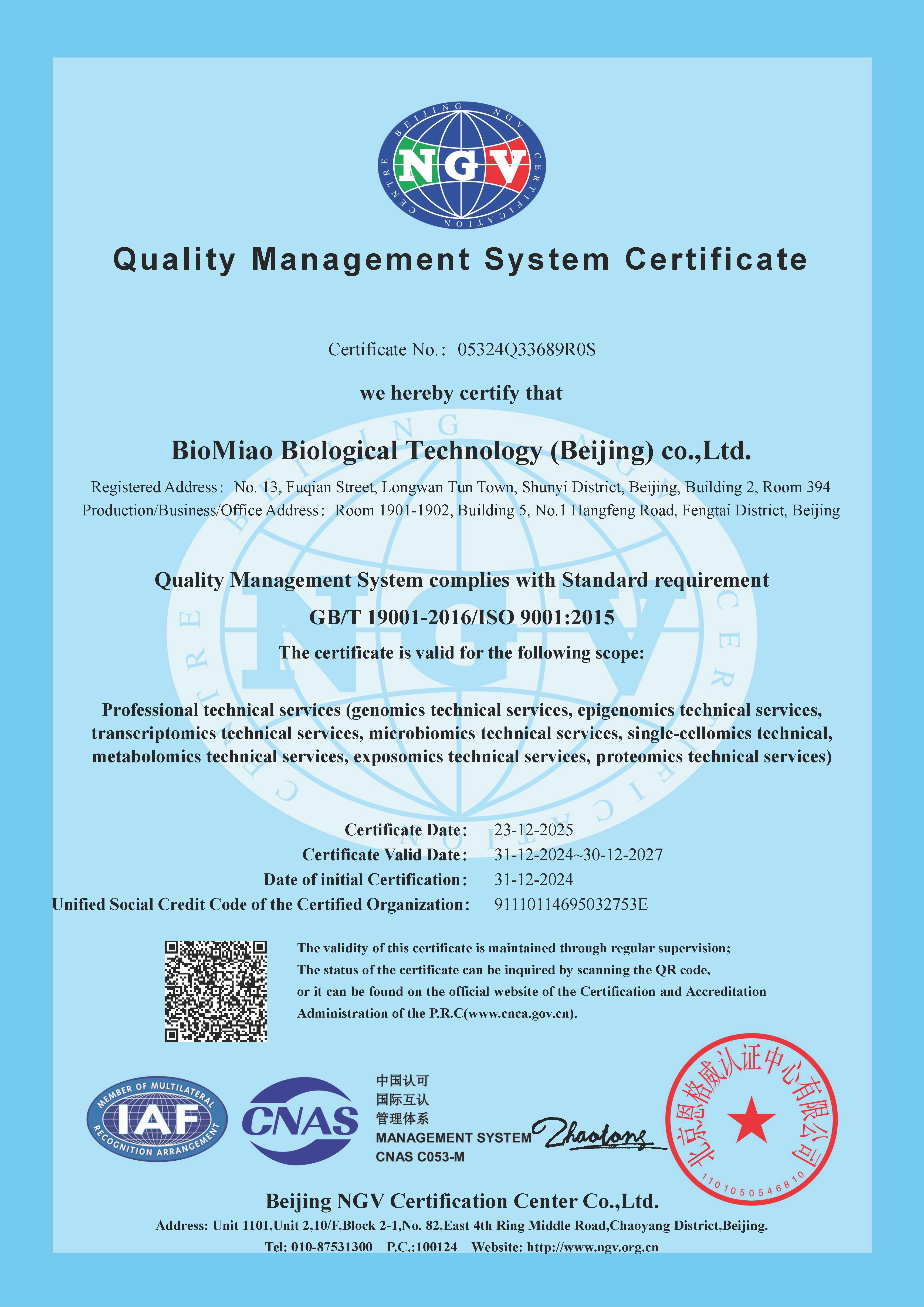 特殊性糖尿病的试剂盒发明专利 改善人体亚健康状况的药物专利 一种基于肺部CT图像特征和基因标志物构建 ISO9001质量管理体系认证证书